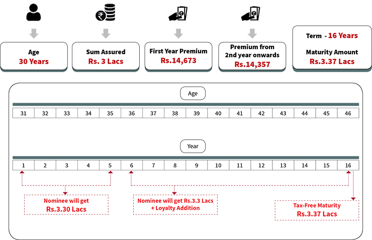 • The customer gets the tax-free maturity which includes the loyalty bonus along with Sum Assured