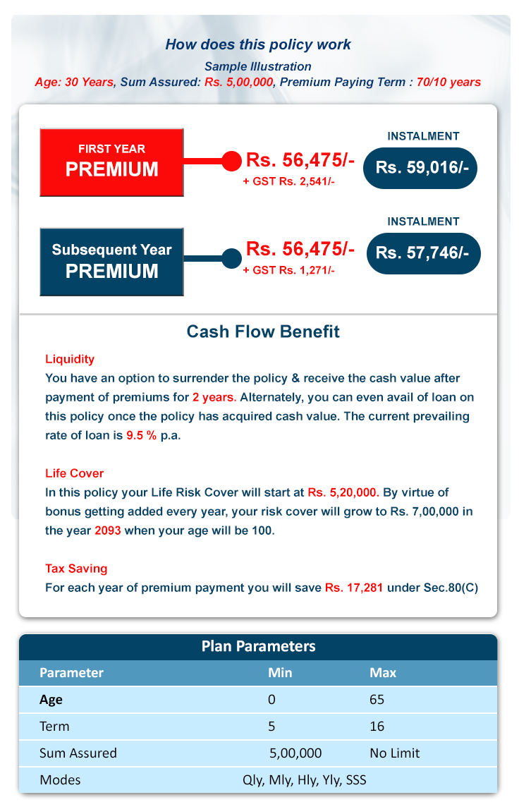 Individual cum Savings, Whole Life Insurance plan.