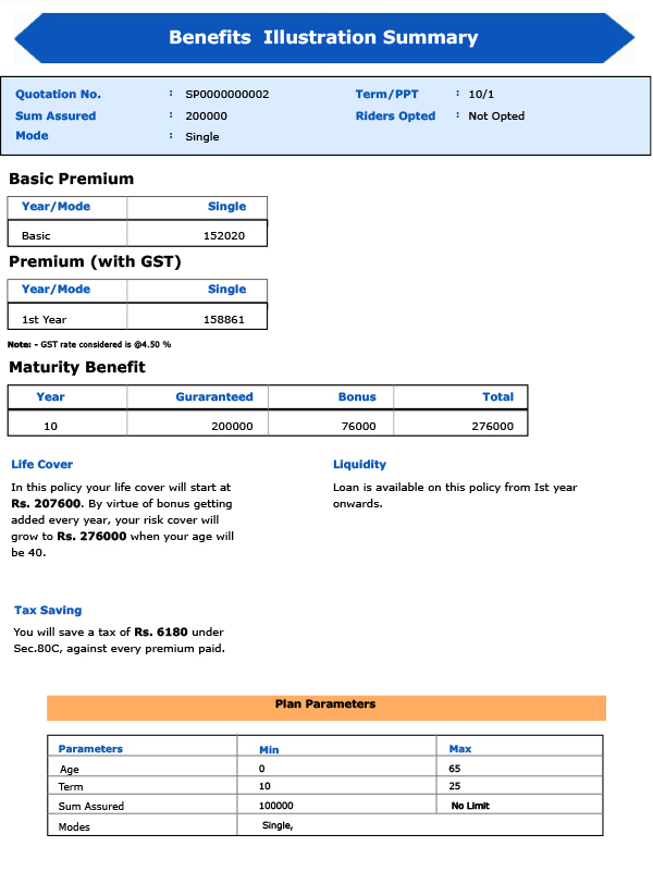 Additionally, the plan allows for loans against the policy after completion of one year, with the loan amount being 90% of the surrender value. This plan aims to provide financial